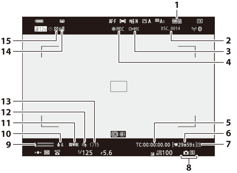Индикатор за запис ( Заснемане на филми (режим b ) ) Индикатор „Няма филм“ ( иконата 0 ) |