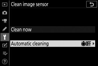 Мръсотия или прах, влизащи във фотоапарата при смяна на лещите или премахване на капачката на тялото, може да полепне по повърхността на сензора за изображение и да повлияе на вашите снимки. Опцията „clean image sensor“ вибрира сензора, за да премахне праха.