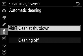 Сензорът за изображение може да бъде почистен по всяко време от менютата или почистването може да се извърши автоматично, когато камерата е изключена. Ако почистването на сензора за изображение не успее да разреши проблема, свържете се с оторизиран сервизен представител на Nikon.