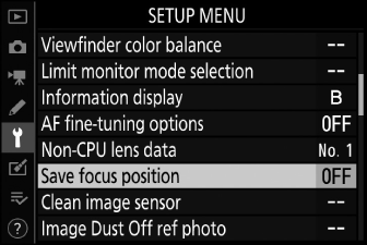 Към менюто за настройка е добавена опция [ Запазване на позицията на фокуса ]. Ако е избрано [ On ], позицията на фокуса, която е в сила, когато камерата е изключена, ще бъде възстановена при следващото включване на камерата.