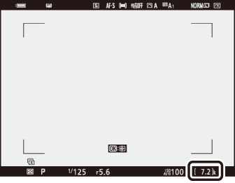 Wenn die Kamera eingeschaltet ist, zeigt die Aufnahmeanzeige die Anzahl der Fotos an, die mit den aktuellen Einstellungen aufgenommen werden können.
