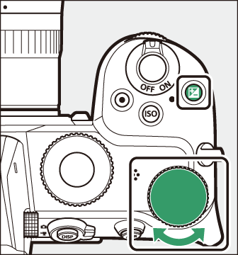 Halten Sie die E -Taste gedrückt und drehen Sie das hintere Einstellrad.