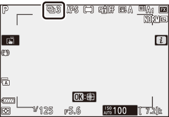 Während der Auslöser bis zum ersten Druckpunkt gedrückt wird, zeigt die Bildzähleranzeige die Anzahl der Bilder an, die im Pufferspeicher gespeichert werden können.