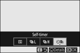Markieren Sie nach dem Drücken der Taste c ( E ) mit dem Multifunktionswähler einen Aufnahmemodus und drücken Sie dann J , um die markierte Option auszuwählen.
