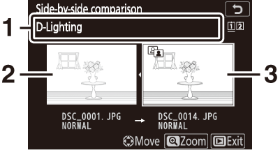 Wenn das aktuelle Bild eines aus einem Paar ist, das mit [ ] oder [ ] erstellt wurde und für [ ] ausgewählt wurde, zeigt die Auswahl dieser Option die Kopie auf der Karte im anderen Slot an. |