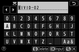 Informationen zum Bearbeiten von Picture-Control-Namen finden Sie unter „Texteingabe“ ( Texteingabe ).