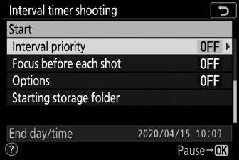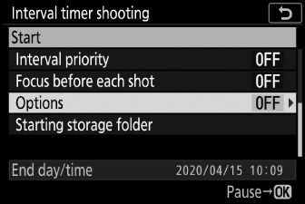 Drücken Sie 2 , um das markierte Element auszuwählen und die Optionen für Intervallaufnahmen anzuzeigen.