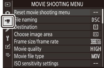 Um das Movie-Aufnahmemenü anzuzeigen, wählen Sie die Registerkarte 1 in den Kameramenüs.