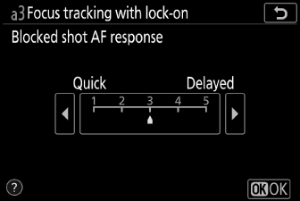 Wählen Sie aus, wie schnell der Fokus reagiert, wenn sich etwas zwischen dem Motiv und der Kamera bewegt, wenn AF-C für den Fokusmodus ausgewählt ist.