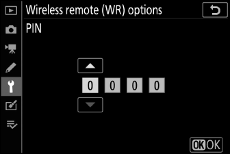 Die Kommunikation wird zwischen allen Geräten mit derselben vierstelligen PIN geteilt. Verbinden Sie sich mit einer vierstelligen PIN. Drücken Sie 4 oder 2 , um Ziffern zu markieren, und drücken Sie 1 oder 3 , um sie zu ändern. Drücken J , um die ausgewählte PIN einzugeben und anzuzeigen.