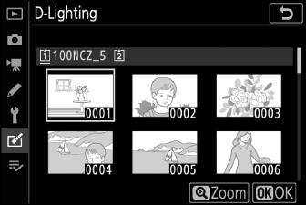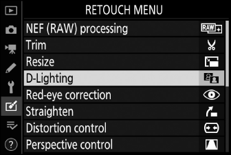 Um das Bildbearbeitungsmenü anzuzeigen, wählen Sie die Registerkarte N in den Kameramenüs.