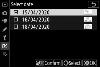 Erstellen Sie JPEG-Kopien aller NEF-(RAW-)Bilder, die an ausgewählten Daten aufgenommen wurden.