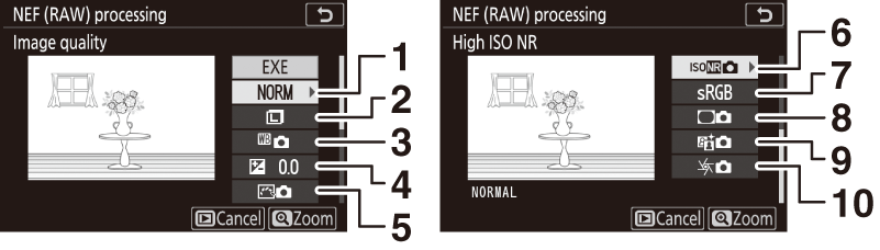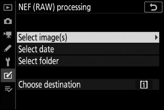 Das Konvertieren von NEF-(RAW-)Bildern in andere Formate wie JPEG wird als „NEF-(RAW-)Verarbeitung“ bezeichnet. JPEG-Kopien von NEF-(RAW-)Bildern können wie unten beschrieben auf der Kamera erstellt werden.