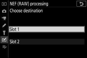 Markieren Sie den Steckplatz mit der Karte mit den NEF-(RAW-)Bildern und drücken Sie 2 .