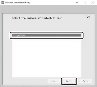 Wählen Sie die Kamera im Wireless Transmitter Utility aus.