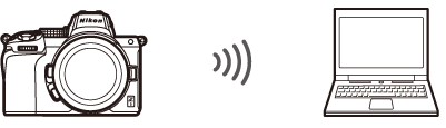 Die Kamera und der Computer werden über eine direkte drahtlose Verbindung verbunden. Die Kamera fungiert als WLAN-Zugangspunkt, sodass Sie bei der Arbeit im Freien und in anderen Situationen, in denen der Computer nicht bereits mit einem drahtlosen Netzwerk verbunden ist, eine Verbindung herstellen können und komplizierte Anpassungen der Einstellungen überflüssig werden. Der Computer kann keine Verbindung zum Internet herstellen, während er mit der Kamera verbunden ist.