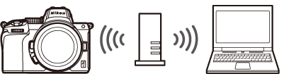 Die Kamera wird über einen drahtlosen Router mit einem Computer in einem bestehenden Netzwerk (einschließlich Heimnetzwerken) verbunden. Der Computer kann sich weiterhin mit dem Internet verbinden, während er mit der Kamera verbunden ist.