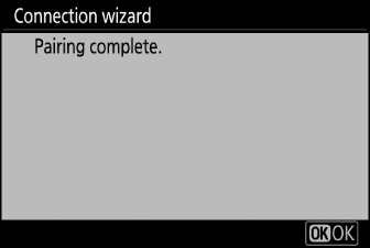 Wenn die Kamera eine Meldung anzeigt, dass die Kopplung abgeschlossen ist, drücken J .