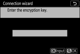 Geben Sie den Netzwerknamen ein und drücken Sie X . Drücken Sie erneut X ; Die Kamera fordert Sie nun auf, den Verschlüsselungsschlüssel einzugeben.