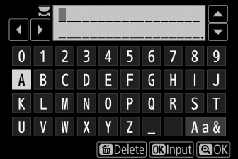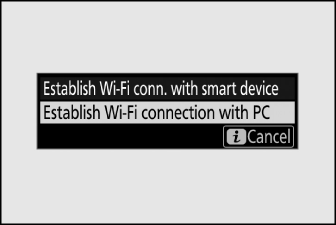 Um eine Verbindung zu einem Netzwerk mit versteckter SSID herzustellen, markieren Sie einen leeren Eintrag und drücken J . Als nächstes drücken J ; Die Kamera fordert Sie auf, eine SSID anzugeben.