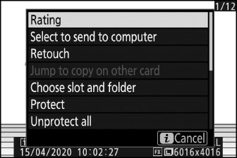 Wählen Sie ein Bild aus und drücken Sie die i -Taste.