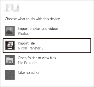 Windows 10 und Windows 8.1 zeigen möglicherweise eine AutoPlay-Eingabeaufforderung an, wenn die Kamera angeschlossen ist.