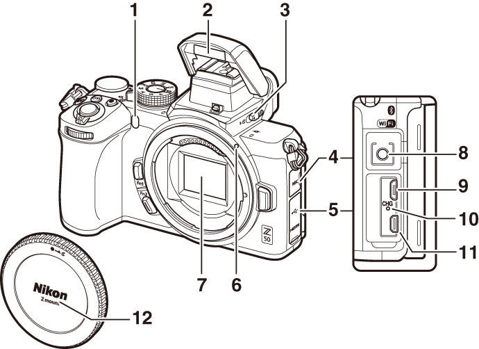 12 Sapata de acessórios (para unidade de flash opcional)