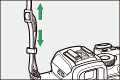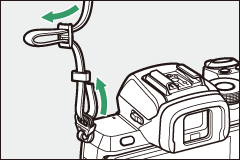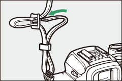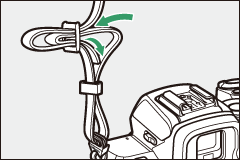 Uma alça é fornecida com a câmera; alças adicionais estão disponíveis separadamente. Prenda a alça firmemente nos ilhós da câmera.