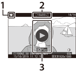 Os filmes são indicados por um ícone 1 . Toque no guia na tela ou pressione J para iniciar a reprodução; sua posição atual é mostrada na barra de progresso do filme.