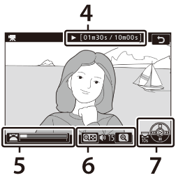 Retroceder/avançar Pressione 4 para retroceder, 2 para avançar. A velocidade aumenta a cada pressão, de 2× a 4× a 8× a 16×; mantenha o controle pressionado para pular para o início ou fim do filme (o primeiro quadro é indicado por um h no canto superior direito da tela, o último quadro por um i ). Se a reprodução for pausada, o filme retrocede ou avança um quadro por vez; mantenha o controle pressionado para retroceder ou avançar continuamente.