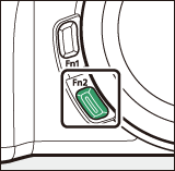 Nas configurações padrão, o modo de foco também pode ser selecionado segurando o botão Fn2 e girando o disco de comando principal ( 0 Os botões de função ( Fn1 e Fn2 ) ).