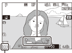 - Se mais de um rosto ou olho humano for detectado, os ícones e e f aparecerão no ponto de foco. Você poderá posicionar o ponto de foco sobre um rosto ou olho diferente pressionando 4 ou 2 .