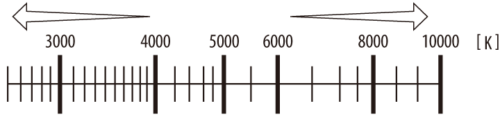 Temperatura de cor. Todos os valores são aproximados e não refletem o ajuste fino (se aplicável).