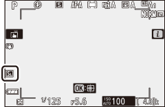 Um ícone é exibido enquanto a fotografia silenciosa está em vigor. Em modos de disparo diferentes de Contínuo H (estendido) , a tela escurecerá brevemente quando o obturador for liberado para sinalizar que uma foto foi tirada.