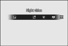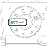 Os seguintes efeitos podem ser selecionados girando o disco de modo para q e girando o disco de comando principal até que a opção desejada apareça no monitor.