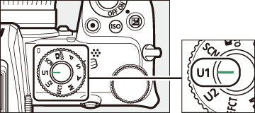 Atribua configurações usadas com frequência às posições U1 e U2 no seletor de modo.