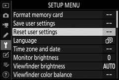 Destaque Redefinir configurações do usuário no menu de configuração e pressione 2 .