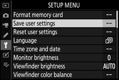 Destaque Salvar configurações e pressione J para atribuir as configurações selecionadas na Etapa 1 à posição do seletor de modo selecionada na Etapa 3.