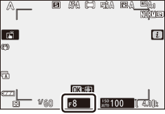 Em automático com prioridade de abertura, você escolhe a abertura enquanto a câmera seleciona automaticamente a velocidade do obturador que produzirá a exposição ideal. Para escolher uma abertura entre os valores mínimo e máximo para a lente, gire o disco de subcomando.