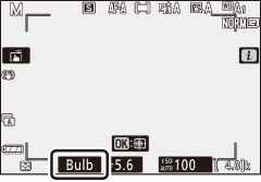 Bulb : Depois de focar, pressione o botão de liberação do obturador até o fim. Mantenha o botão de liberação do obturador pressionado até que a exposição seja concluída.