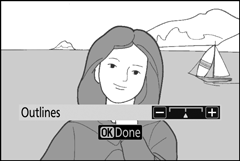 Afie os contornos e simplifique a coloração para um efeito de pôster. Pressione J para ajustar as configurações ( 0 Ajustar as configurações de U (ilustração fotográfica) ).