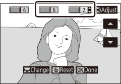 Para ajustar as configurações, selecione 6 no modo de efeitos especiais e pressione J .