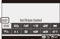 Em configurações diferentes de b A , a opção atualmente selecionada é mostrada por um ícone no visor.