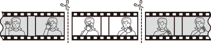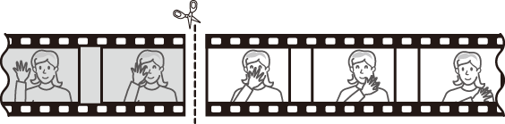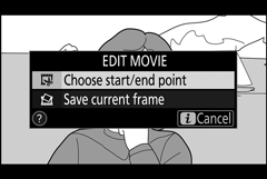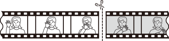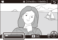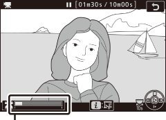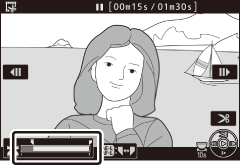 Reproduza o filme conforme descrito em “Visualizando Filmes” ( 0 Visualizando Filmes ), pressionando J para iniciar e retomar a reprodução e 3 para pausar e pressionando 4 ou 2 ou girando o disco de comando principal para localizar o quadro desejado. A sua posição aproximada no filme pode ser verificada na barra de progresso do filme. Pause a reprodução quando chegar ao novo quadro de abertura.