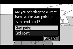 Pressione o botão A ( L ) para alternar da ferramenta de seleção do ponto inicial ( w ) para o ponto final ( x ) e, em seguida, selecione o quadro de fechamento conforme descrito na Etapa 5. Os quadros após o quadro selecionado serão removidos quando você salvar o copie na Etapa 9.