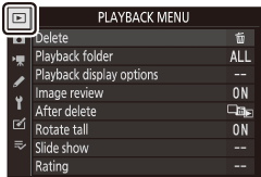 Para visualizar as opções de reprodução, selecione a guia D nos menus da câmera.