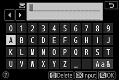 Para inserir um comentário descritivo de até 36 caracteres para a predefinição de balanço de branco atual, selecione Editar comentário no menu de balanço de branco manual predefinido.