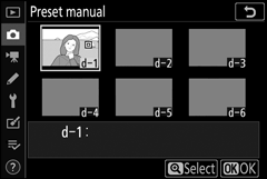 O menu de balanço de branco manual predefinido será exibido; realce Selecionar imagem e pressione 2 .