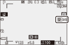Enquanto o bracketing está em vigor, o visor mostra um ícone de bracketing ADL e o número de fotos restantes na sequência de bracketing. Após cada disparo, o número de disparos restantes será reduzido em um.