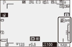 A câmera modifica a exposição variando a velocidade do obturador e a abertura (modo P ), a abertura (modo S ) ou a velocidade do obturador (modos A e M ). Se Ligado for selecionado para configurações de sensibilidade ISO > Controle automático de sensibilidade ISO nos modos P , S e A , a câmera variará automaticamente a sensibilidade ISO para uma exposição ideal quando os limites do sistema de exposição da câmera forem excedidos; no modo M , a câmera primeiro usará o controle automático de sensibilidade ISO para aproximar a exposição o mais próximo possível do ideal e, em seguida, ajustará essa exposição variando a velocidade do obturador.